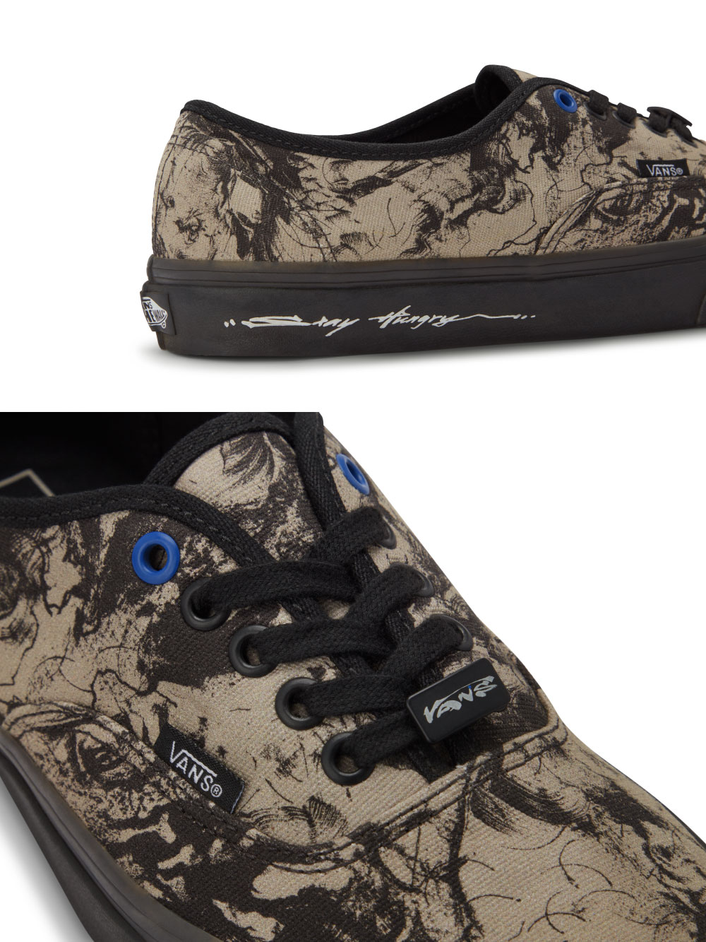 もう1足は、シューズ全面にプリントされたインクペイントと “Stay Hungry “のスローガンが描かれています。