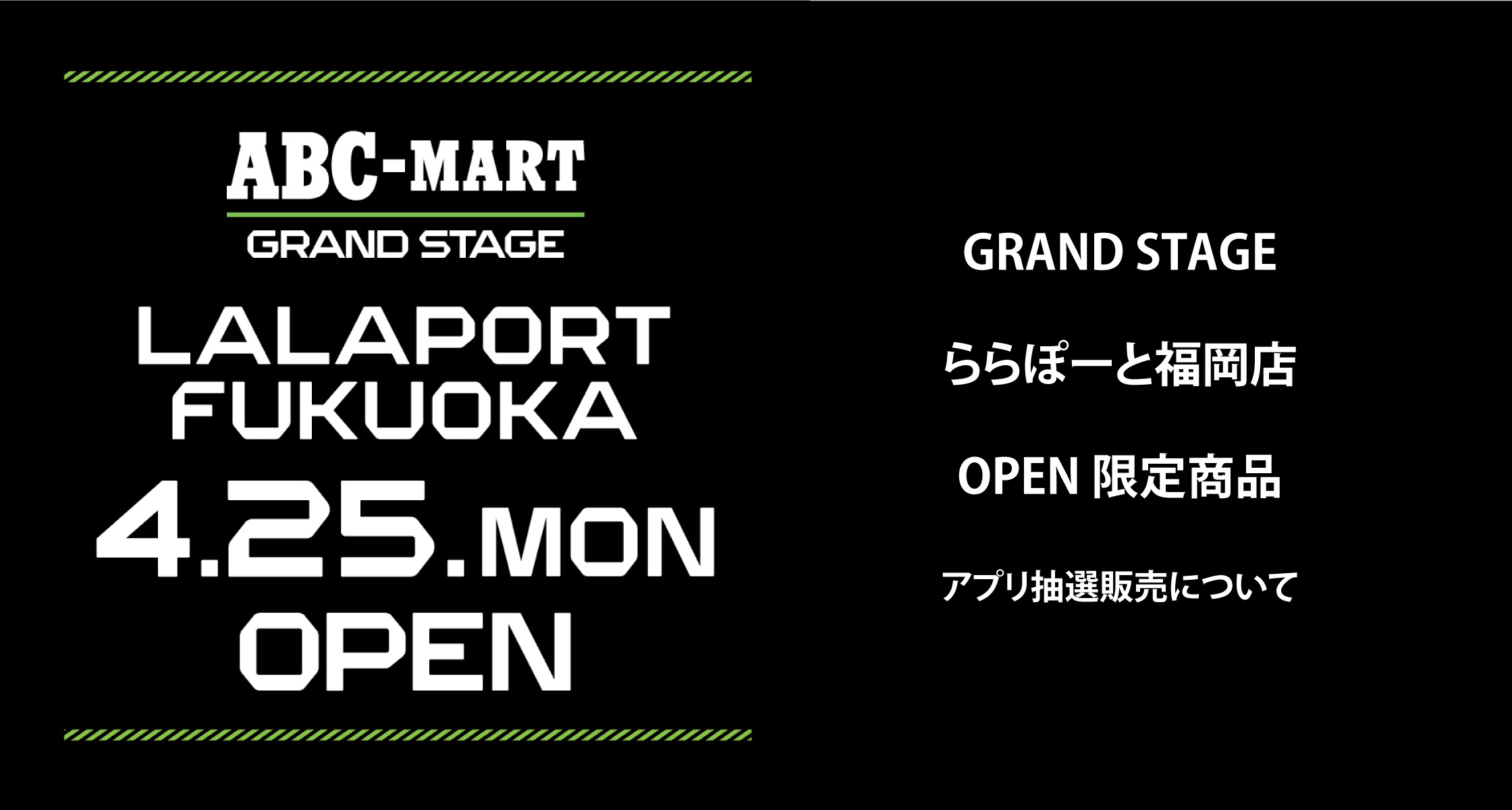2022/4/25 OPEN ABC-MART GRAND STAGE ららぽーと福岡店の抽選について、下記注意事項を必ずご確認頂きますようお願い申し上げます。