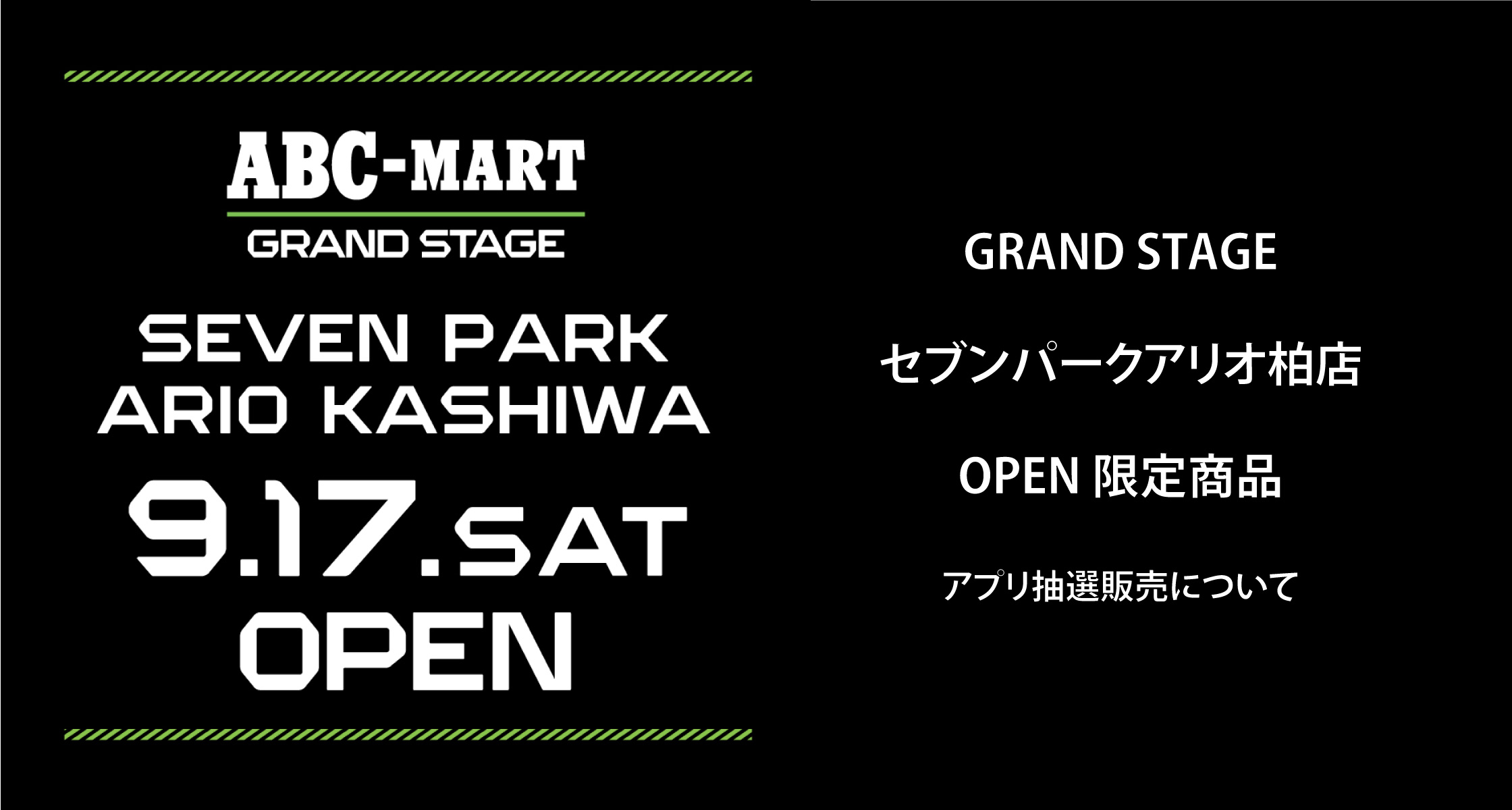 2022/9/17 OPEN ABC-MART GRAND STAGE セブンパークアリオ柏店の抽選について、下記注意事項を必ずご確認頂きますようお願い申し上げます。