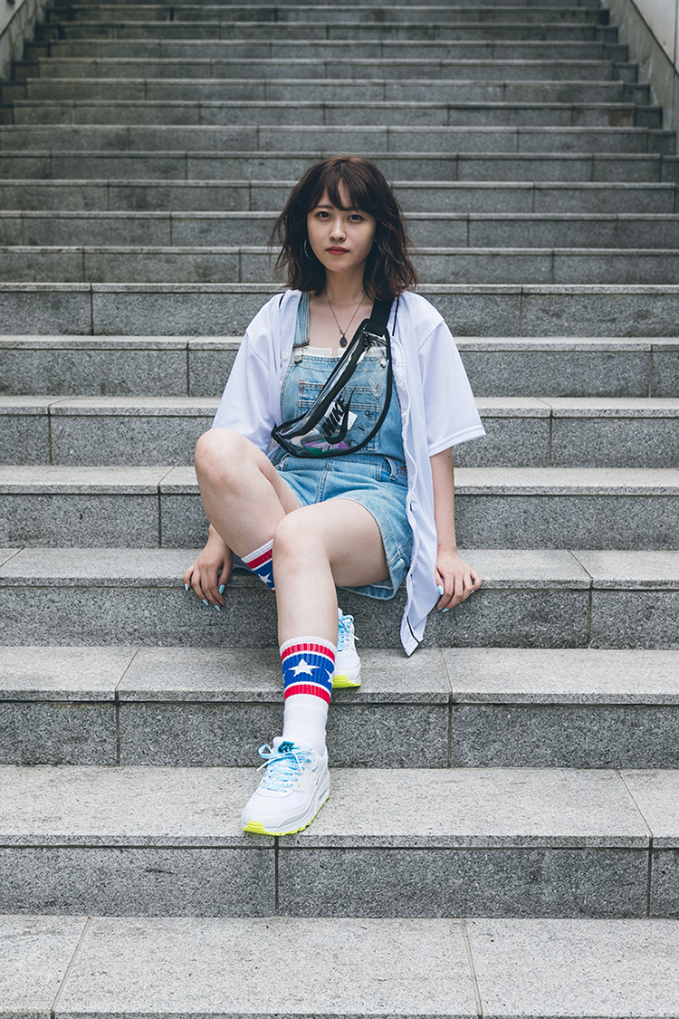 AIR FORCE 1の爽やかな配色を意識しポップなカラーリングを組み合わせたスタイリング。 スタッフ着用アパレルサイズ M (スタッフ身長 164cm)