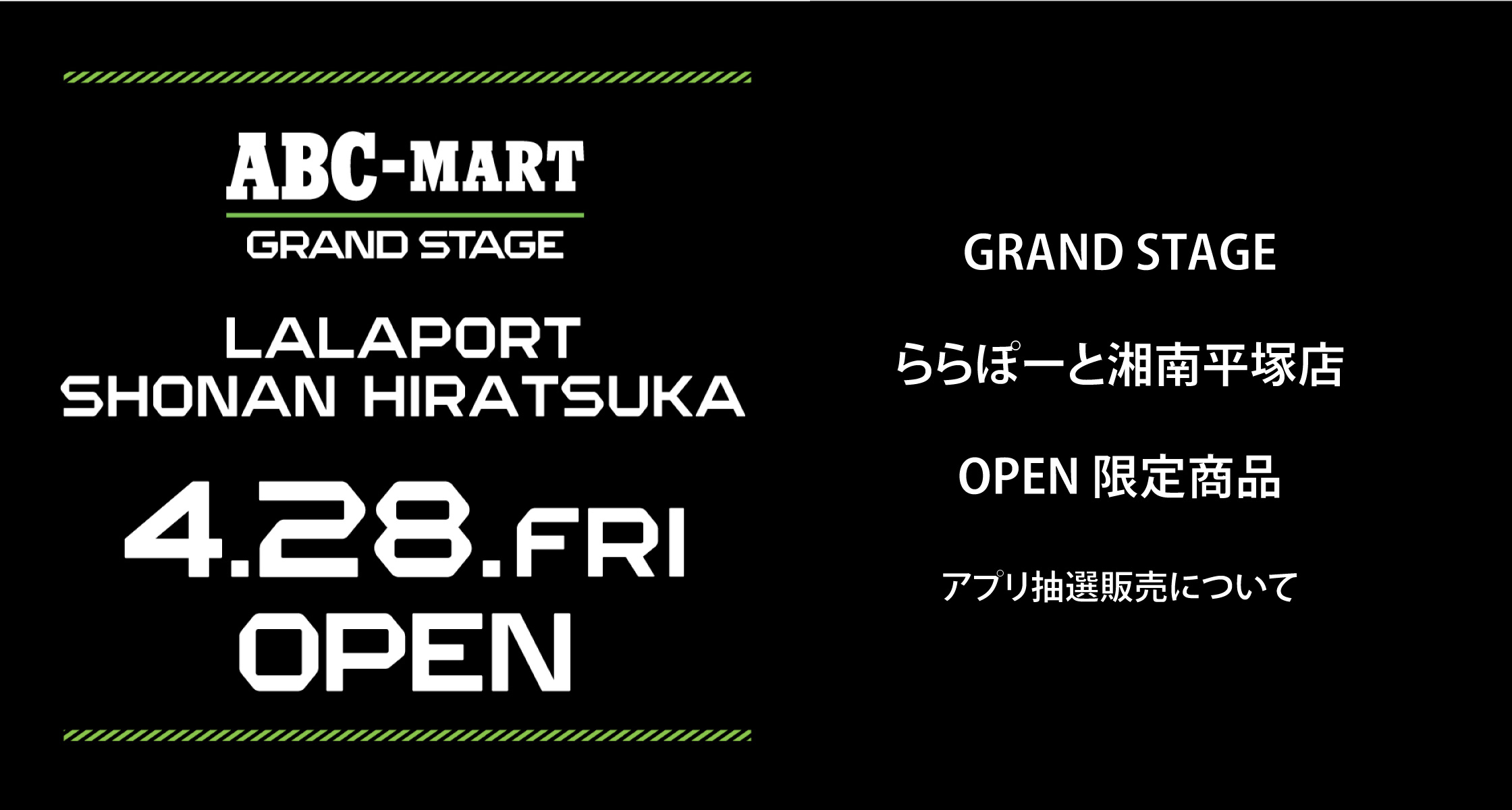 2023/4/28 OPEN ABC-MART GRAND STAGE ららぽーと湘南平塚店の抽選について、下記注意事項を必ずご確認頂きますようお願い申し上げます。