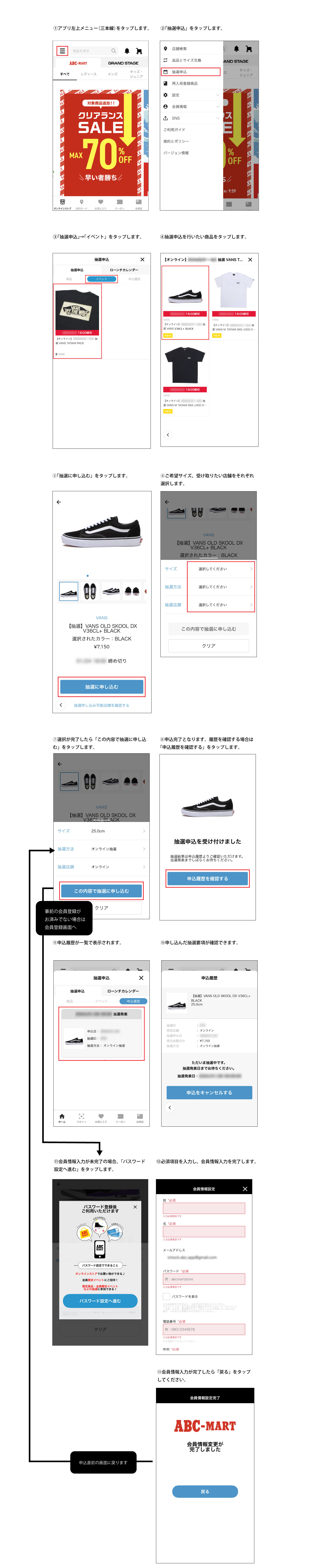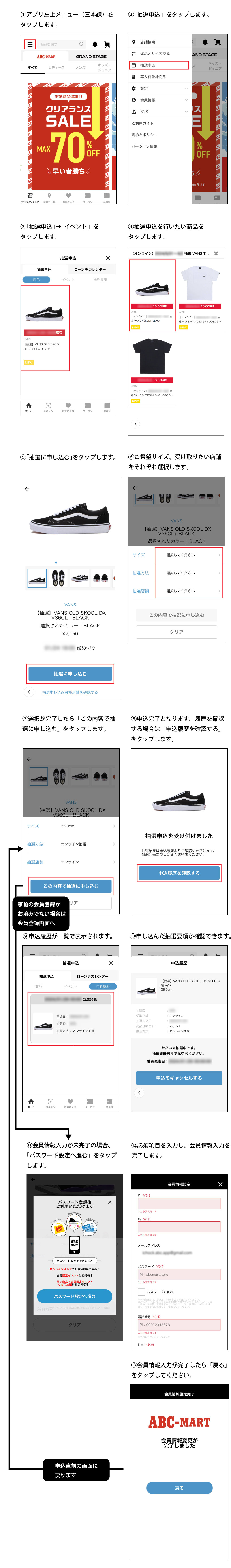 事前にアプリダウンロード、会員情報の入力はエントリー期間に、済ませていただく事をお勧めいたします。
