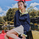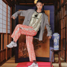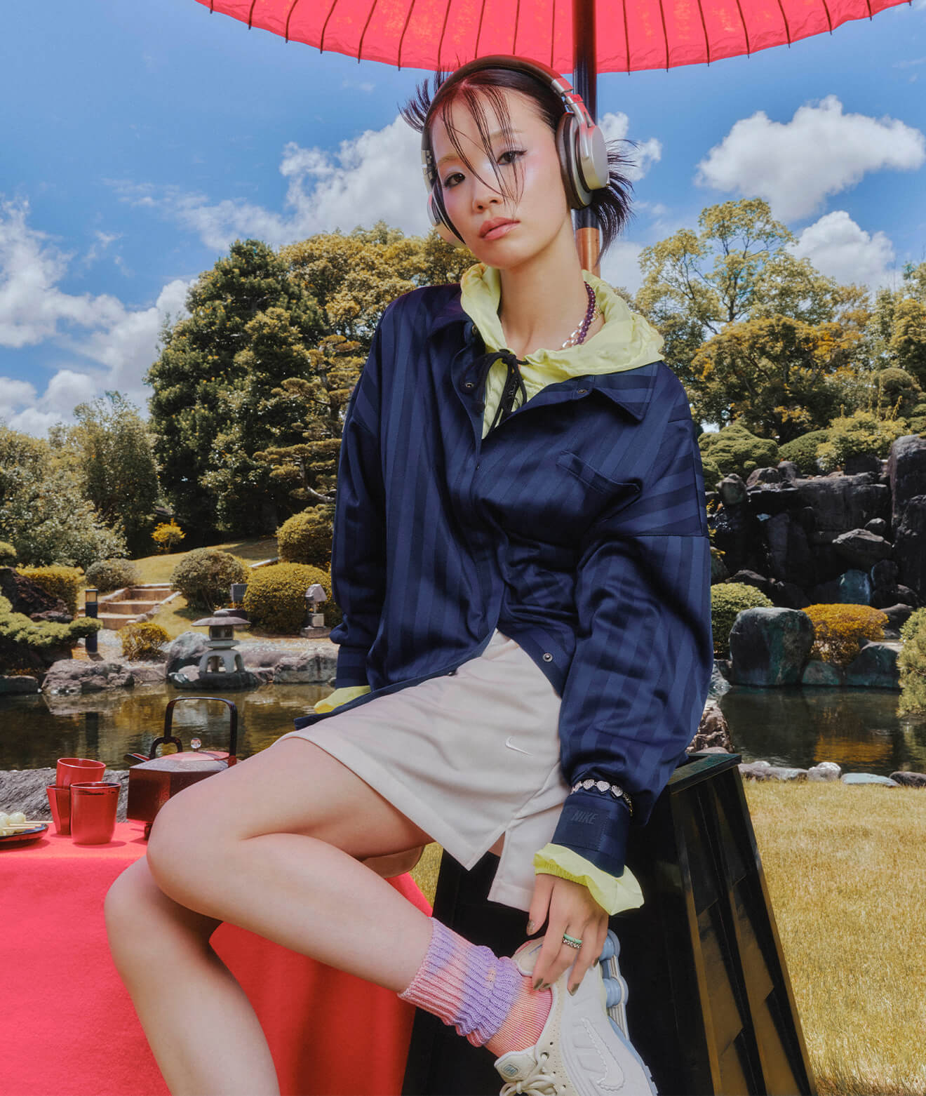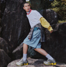 上下色違いで合わせて遊び心のある印象に。