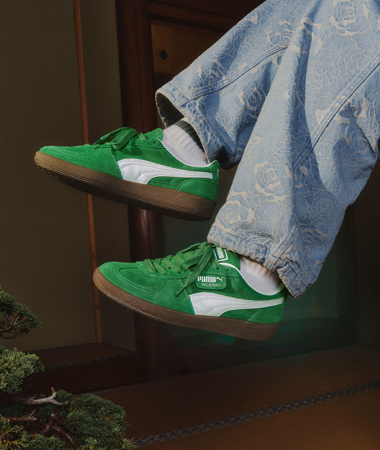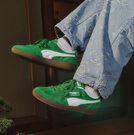 ワンポイントの緑のシューズで