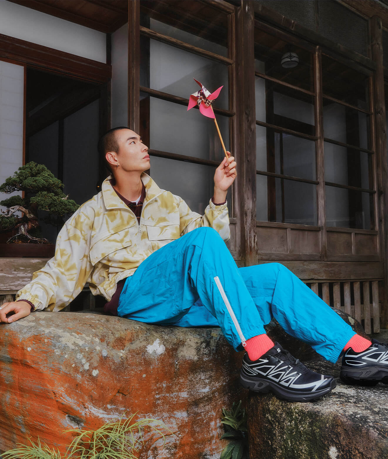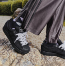 タフな足元に負けないファッションで、