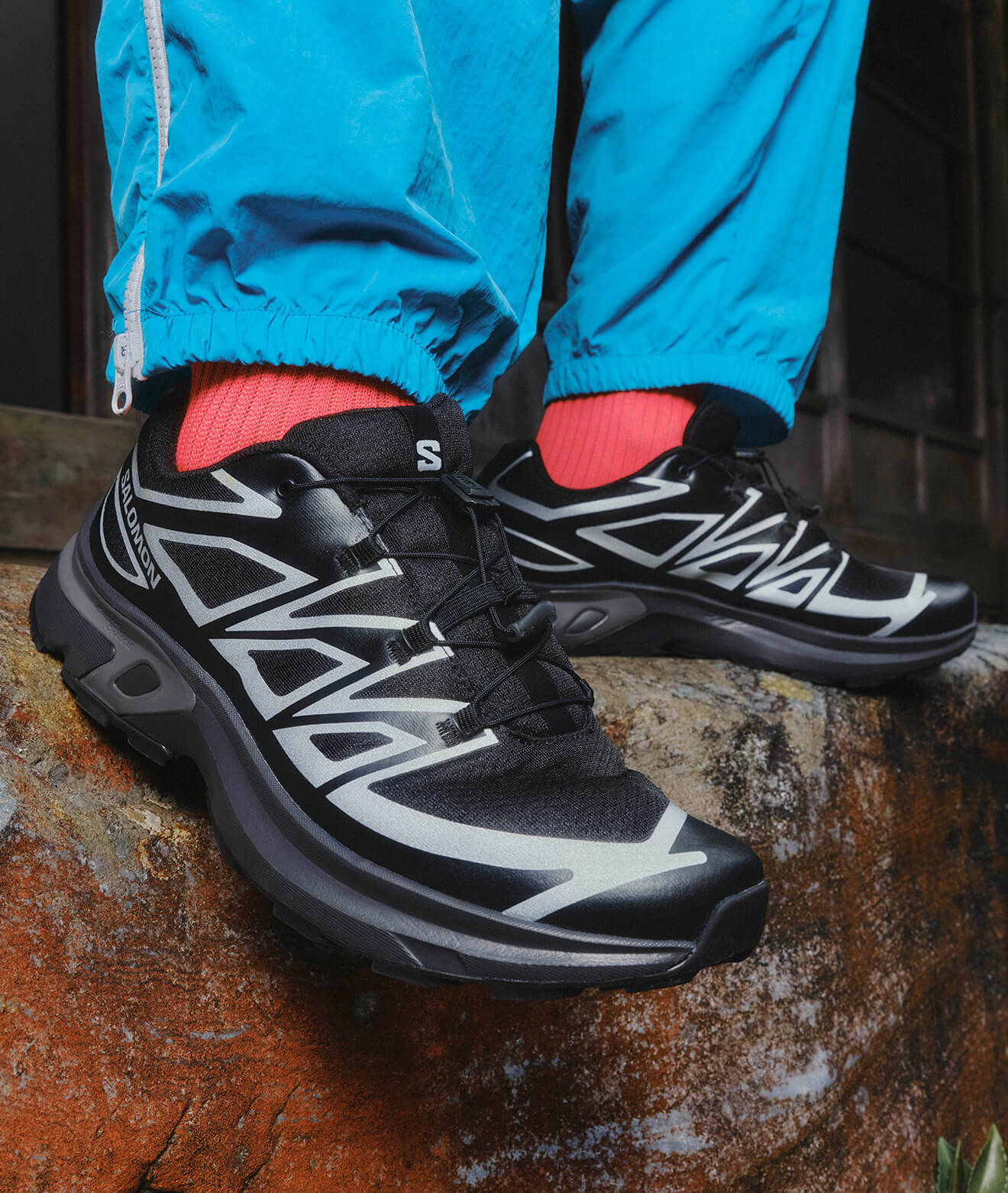 定番シルエットの白いsalomonシューズは、