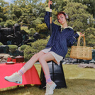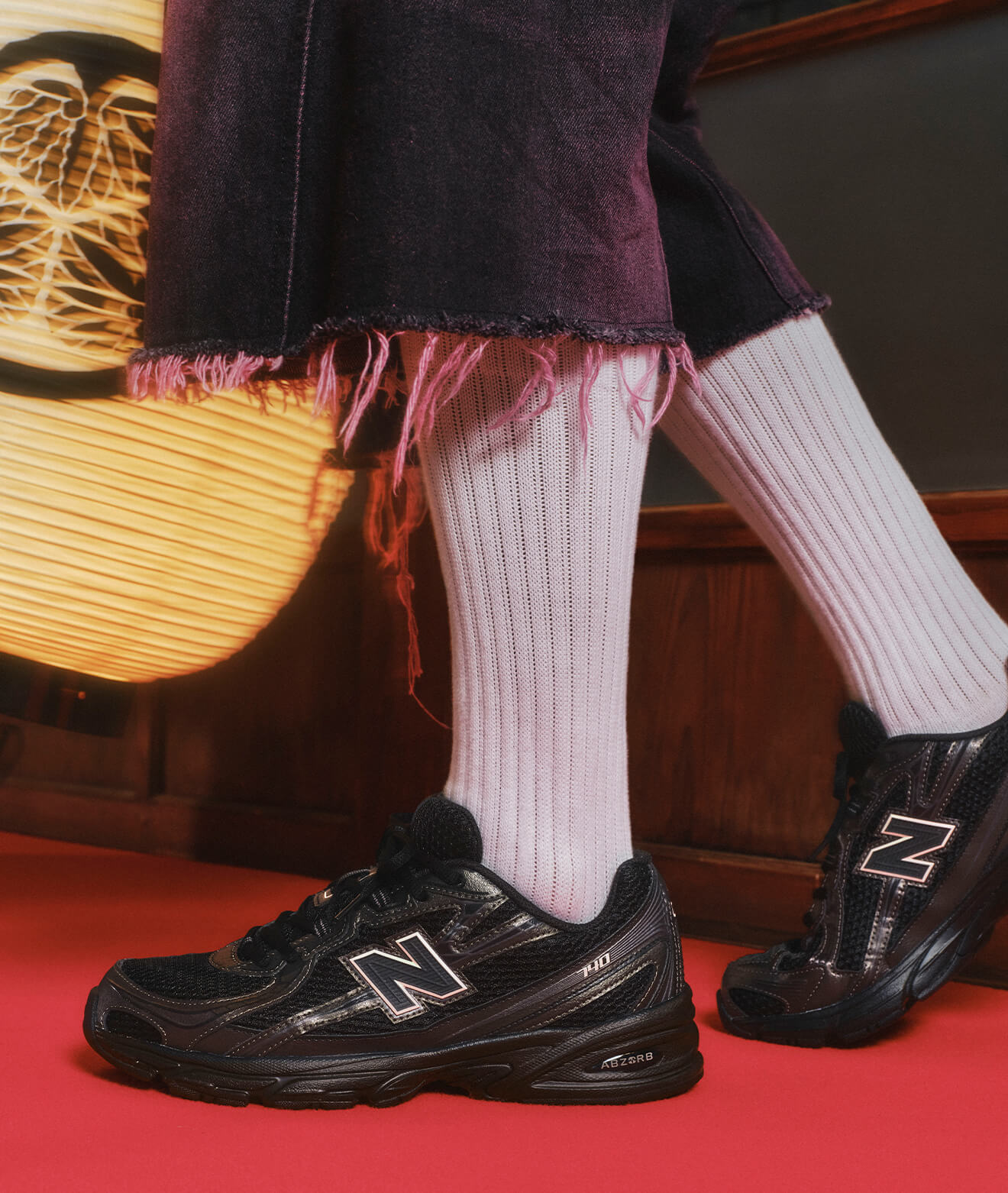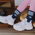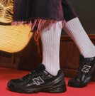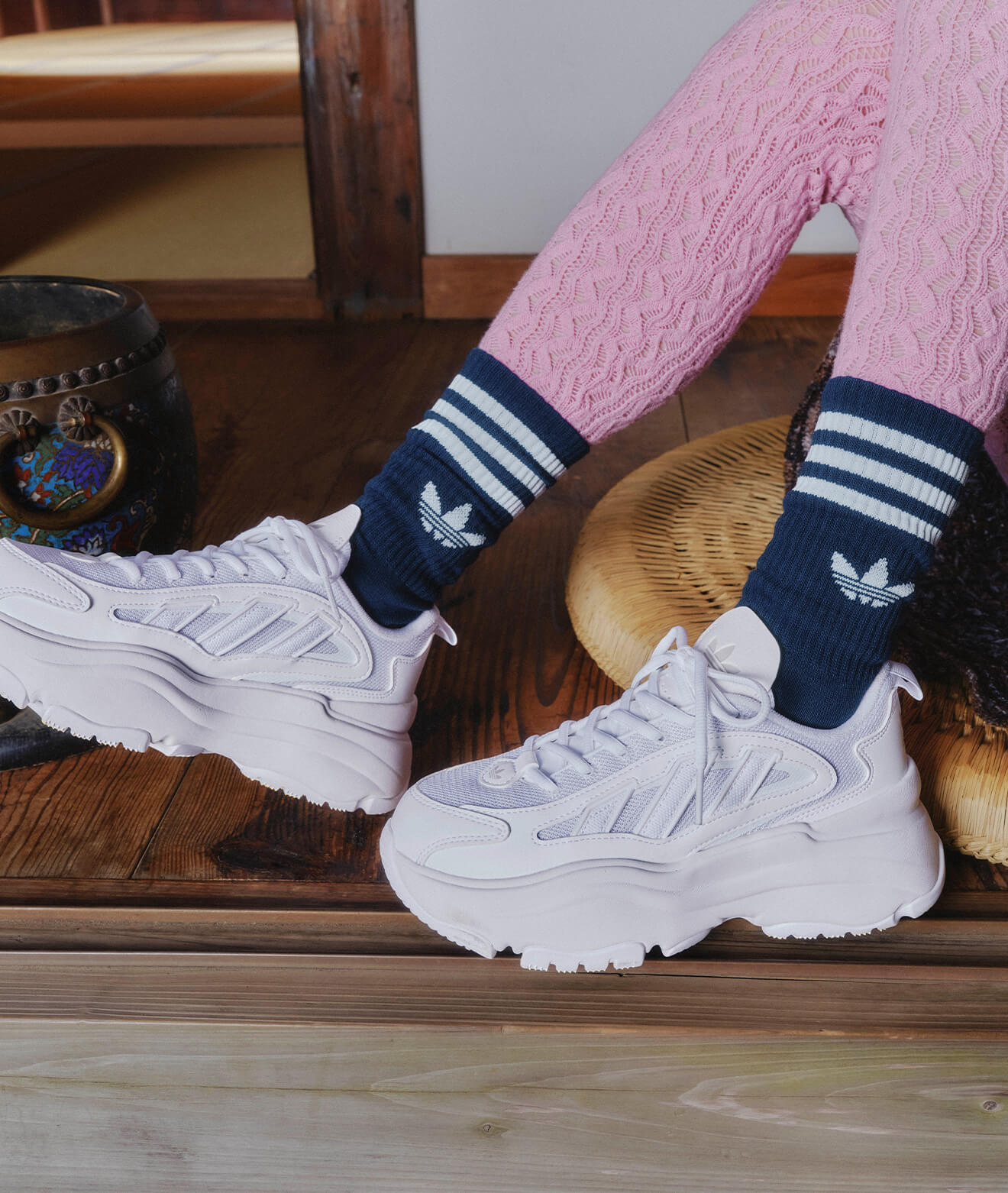 厚底のシューズはネイビーのソックスと合わせて
