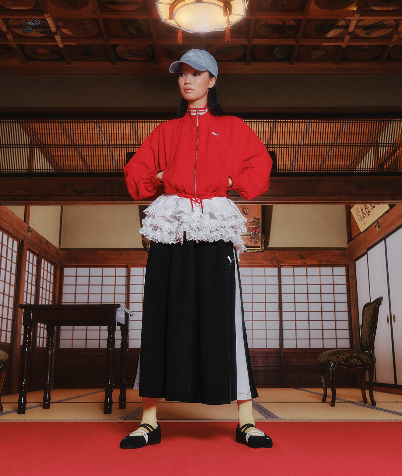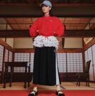 メインの赤いジャケットは女性らしいAラインの