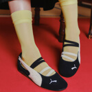 足元のイエローヒールが