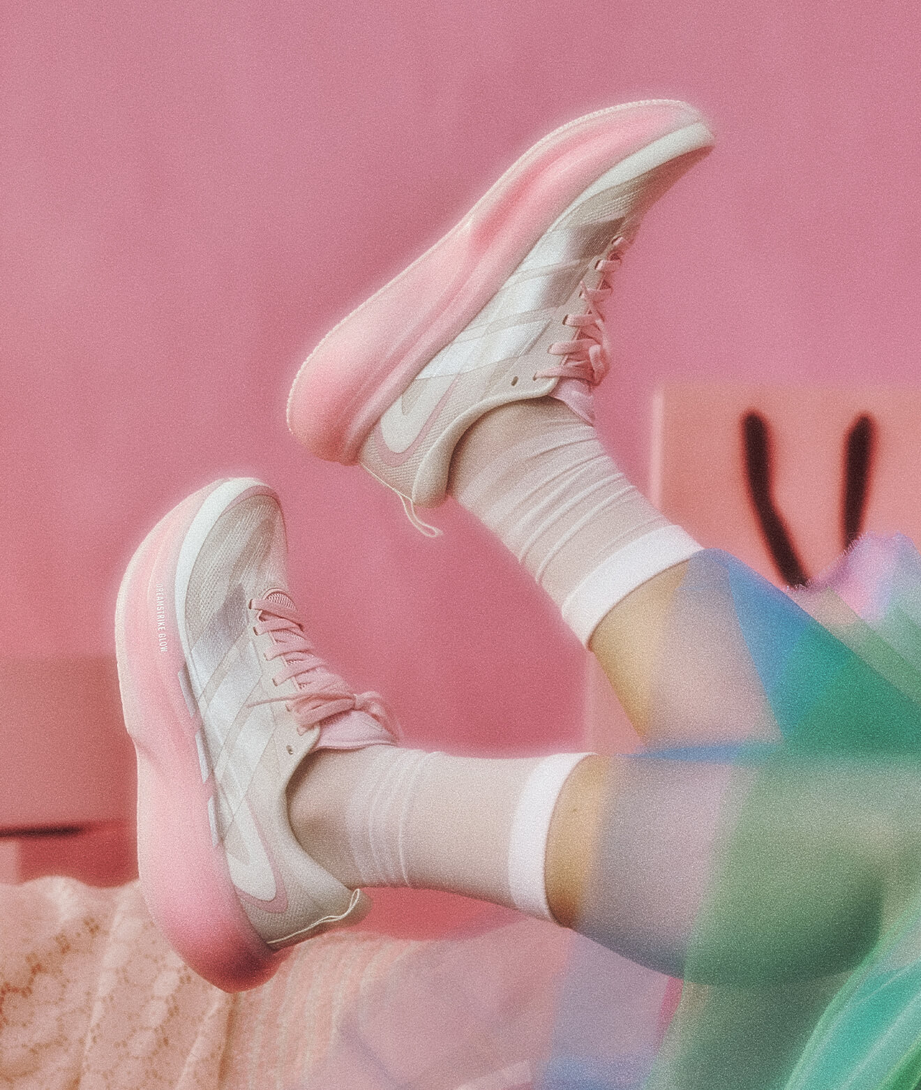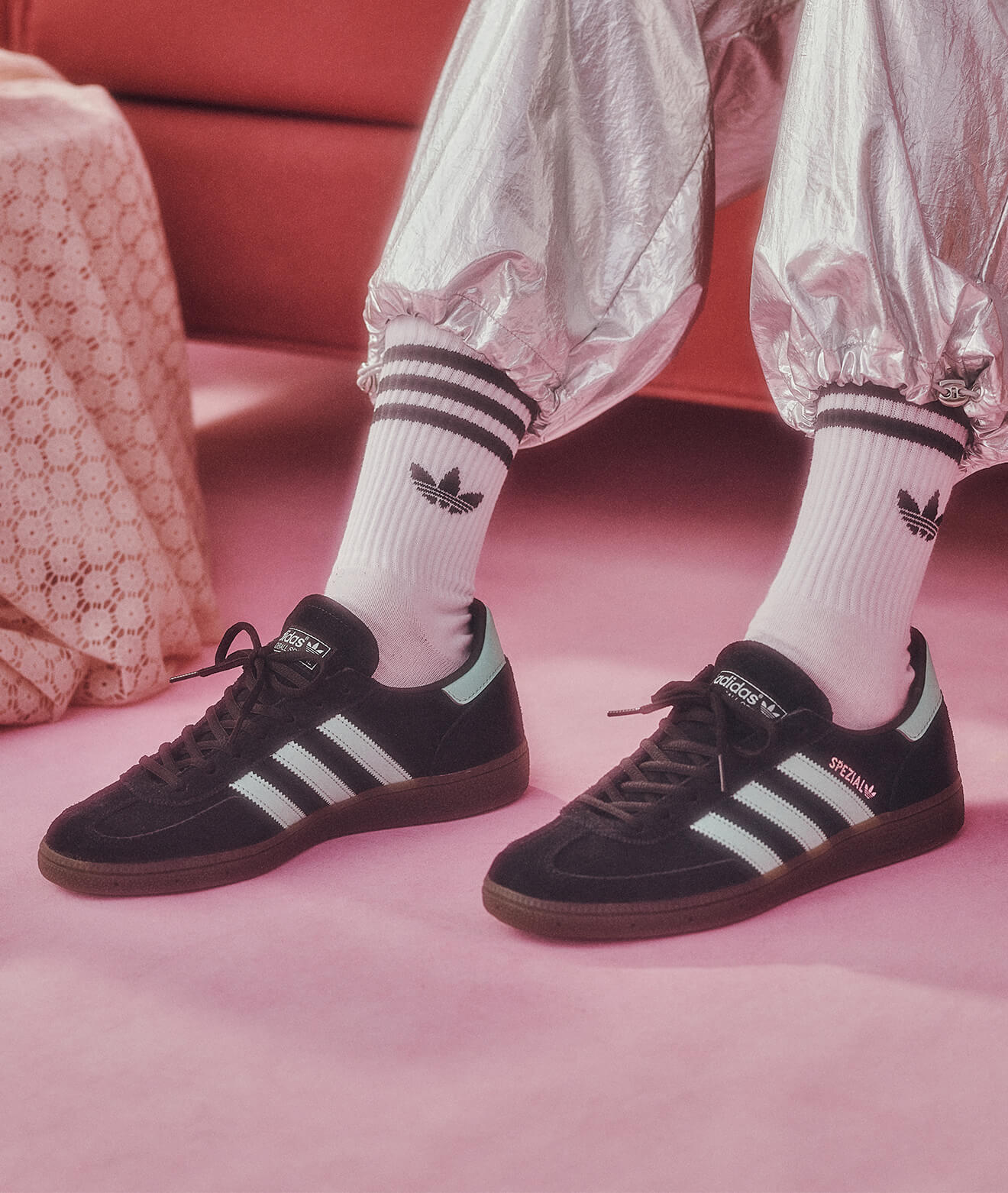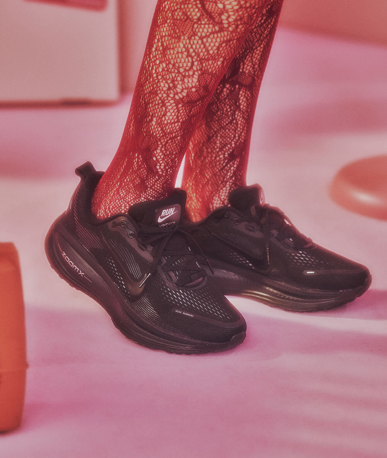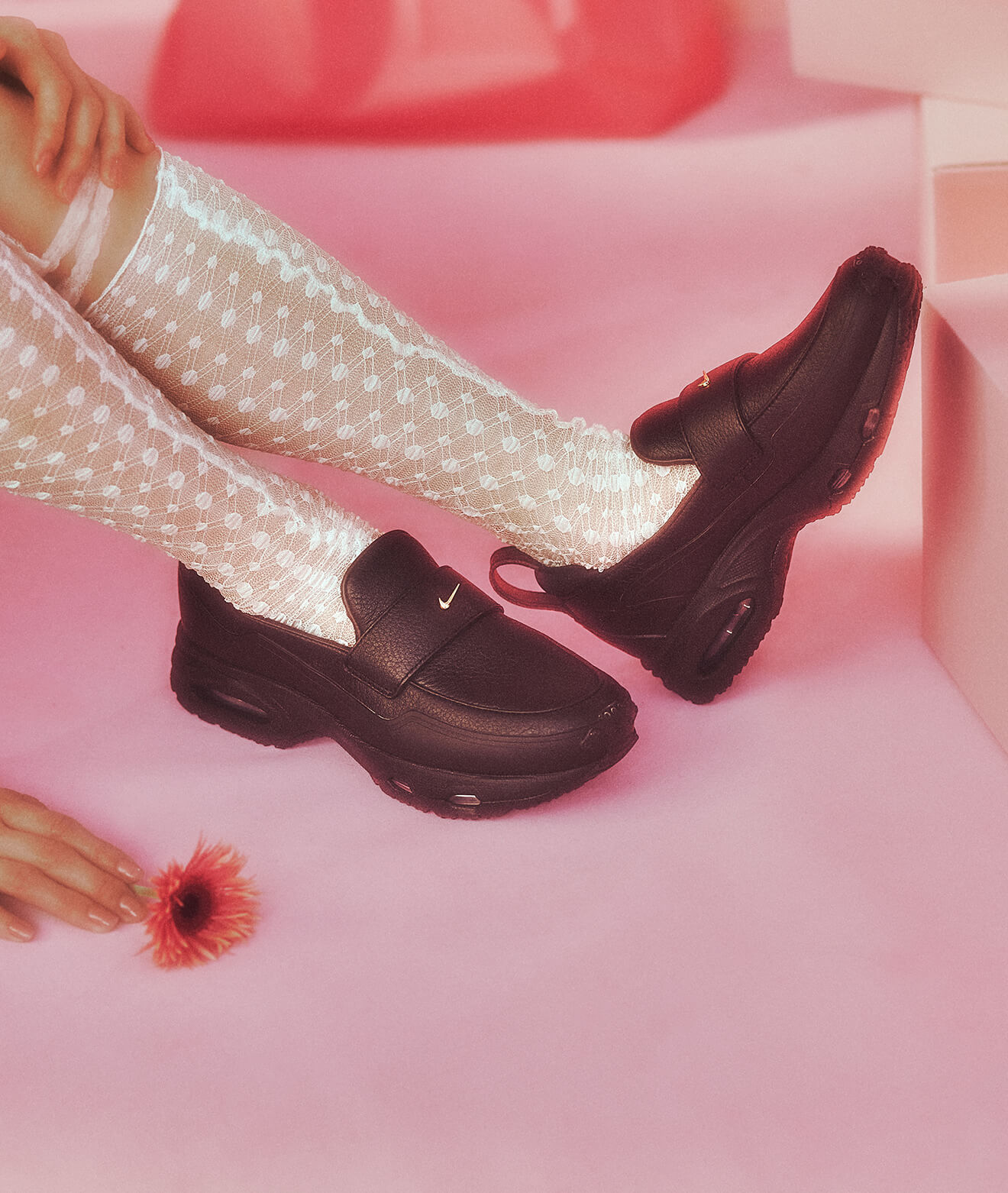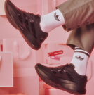 デザインのシューズが視線を集め、