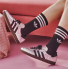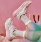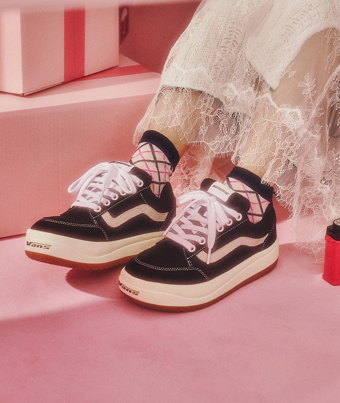 スケート由来のシューズで足元を引き締めて。