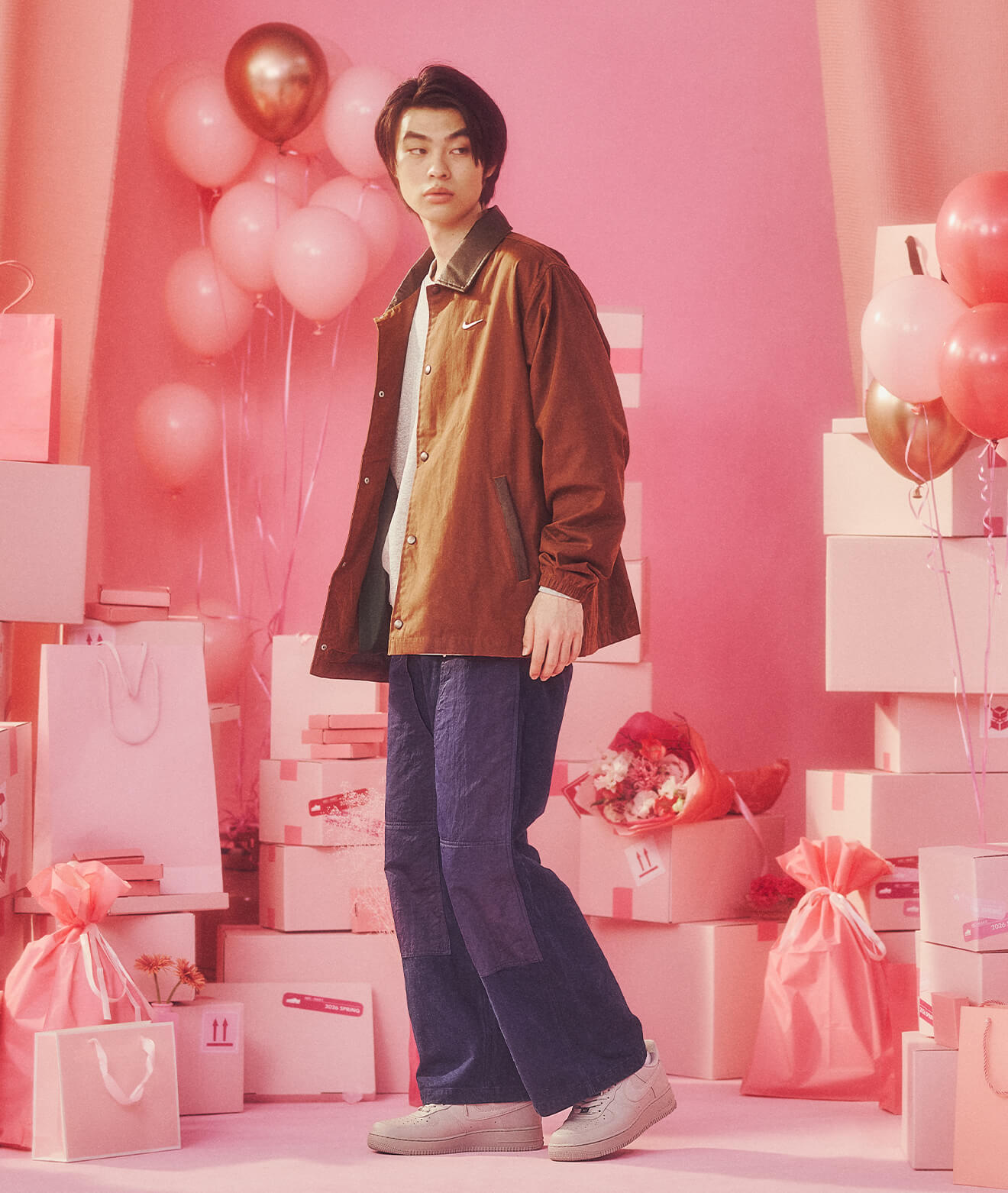 足元のスニーカーが程よいボリュームで