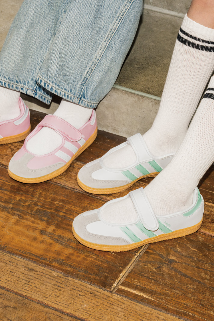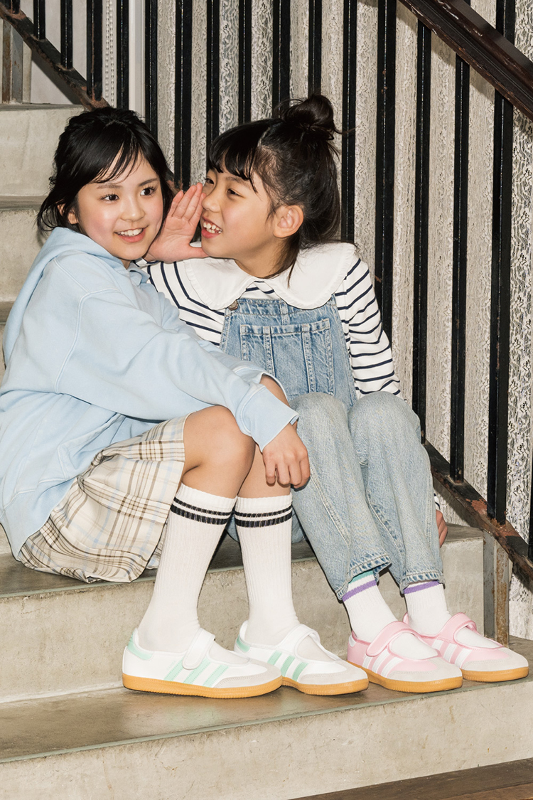 アディダスオリジナルスのサンバなどの定番モデルが、キッズサイズに。