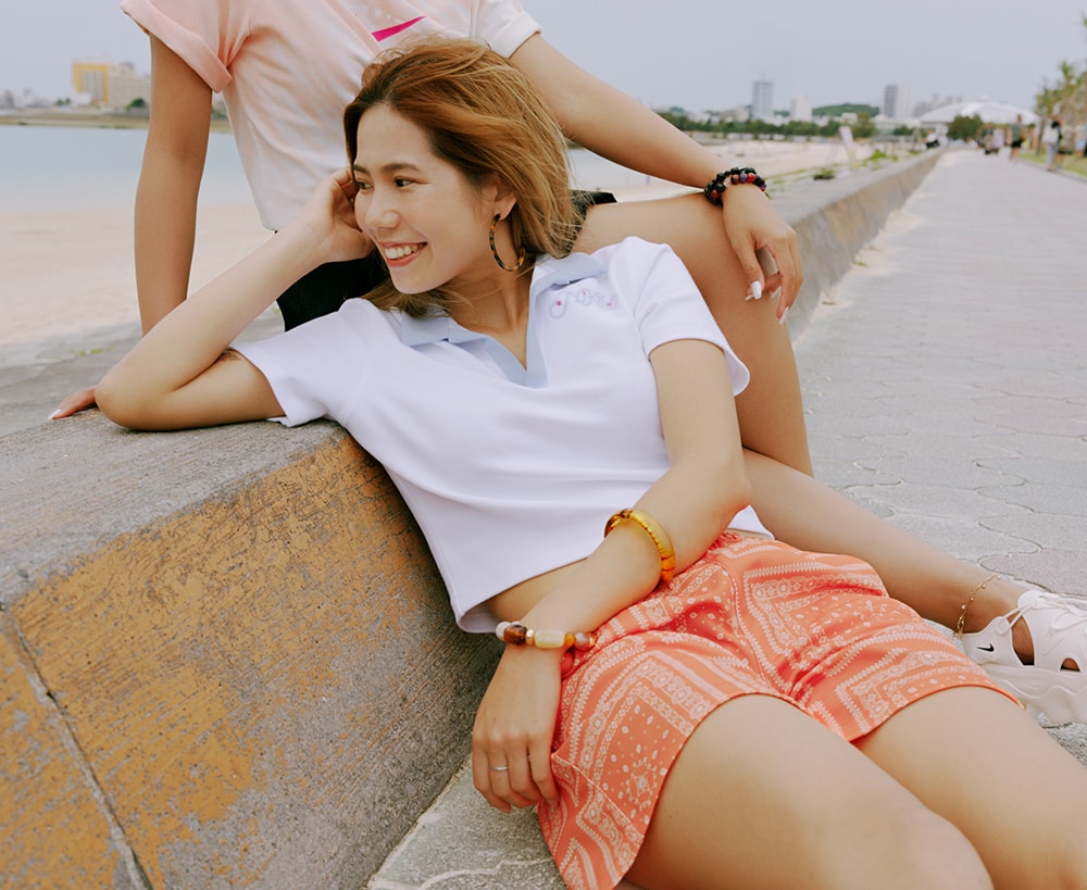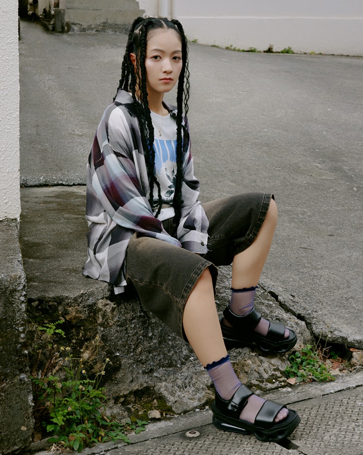 素足にサンダル、Tシャツ一枚でクールに決まる。