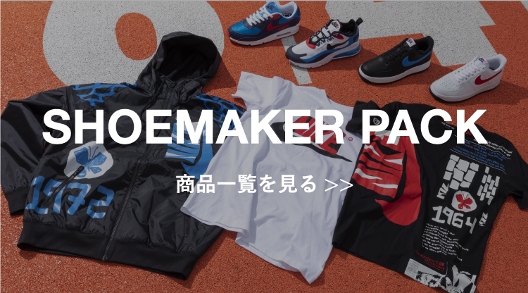 私自身がそうでしたが、初めて買うNIKEの一足が「AIR FORCE 1」というお客さんは多いです。愛着を持って長年買い続けているファンに支持されているモデルなので、NIKEの歴史的なストーリーを持つこのSHOEMAKER PACKのAIR FORCE 1が刺さる人は多いのではないでしょうか。派手めな「WIND RUNNER」のデザインは女性が着用するなら、たとえばスキニーパンツやレースのスカートと合わせて、スポーティーさと女性らしさをミックスしたコーディネートがイチオシです。インナーとしてパーカーを着て古着コーデとしても!