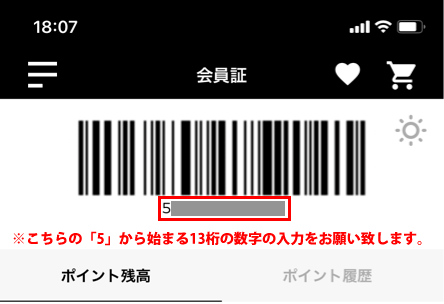 バーコード下の13桁の数字を入力。