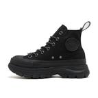 トレッキングシューズをモチーフに、ボリュームのあるアウトソールを合体させたALL STAR (R) TREKWAVE HIをベースに、ブラックモノクロームでカラーリングし、ブーツテイストに仕上げた一足。
