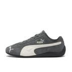 スピードキャットは、1999年に誕生し、80年代から90年代にかけてF1グランプリのドライバーが履いていた耐火レーシングシューズをベースにしたライフスタイルシューズです。レーシングにインスパイアされたなめらかなラインと空気力学に基づいたデザインにより、ファッションやスニーカーカルチャーに衝撃を与えてきました。今回、再びリリースされるスピードキャットOGは、F1レーシングチームを彷彿とさせるブラックとレッドの2色展開で、スウェード素材をふんだんに使用した仕上がりとなっています。2000年代初頭のレーシングウェアに敬意を表し、つま先には“プーマキャット”の刺繍が施され、シュータンとフォームストリップの上にはゴールドのロゴがあしらわれています。