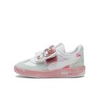 PUMA x ハローキティフレンズコレクションより、パレルモの特別バージョンが登場します。クイッククロージャーにより、お子様でも簡単に着脱できます。パレルモの特徴である T 字型のつま先構造とクラシックなガムソールはそのままに、タイダイ柄のテキスタイルアッパー、マイメロディバッジを採用しています。また、お子様の足を一日中快適に保つSOFTFOAM+インソールを使用。夏のビーチ気分を味わえるポップなルックスの一足です。