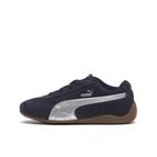 レーシングシューズからインスピレーションを受けたクラシックなシルエットと、スピードを感じさせる流れるようなラインが特徴のSpeedcat OG。そのアイコニックなデザインが、今、ストリートカルチャーに新たな風を吹き込みます。今回の「Speedcat Metallic」モデルでは、上質なスエード素材のアッパーに、立体感のあるフォームストリップ(サイドのライン)を採用。さらに、かかと部分にはラバー素材のツールが巻き付くようにデザインされ、スタイルと機能性を両立しています。