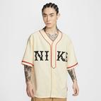ナイキのスポーツにインスパイアされたジャージーは、しっかりとした厚手のヘンプ混紡素材を使用しています。