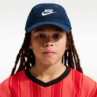Nikeのスウッシュスタイルをあしらったクラシックなベースボールキャップ。ストラップバックでフィット感を調節できます。曲線的なつばと内側の汗止めバンドにより、キッズが日差しの下で遊んでいるときも涼しくさらりとした状態が持続します。