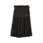 T7のアイコニックデザインを活かしたミディ プリーツ スカート。ウエストはゴム仕様で着脱やフィット感の調整も簡単です。フロントにはオーバーレイディテールをあしらい、リボンで結べるアクセントをプラス。シンプルなデザインにさりげないロゴを添え、上品で洗練された印象を演出。動きやすく快適な着心地で、日常のカジュアルスタイルからお出かけコーディネートまで幅広く活躍する一枚です。