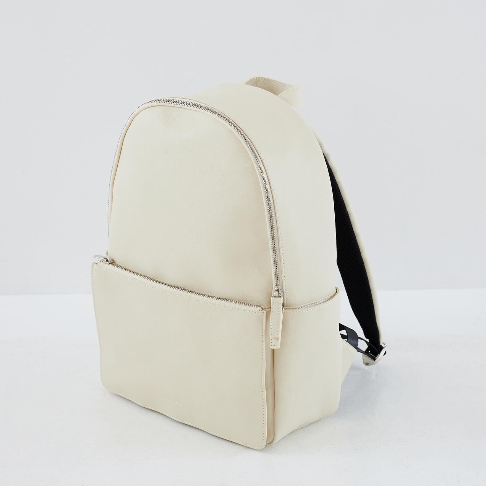 外側にはポケットを装備し、内側にはノートPCが収納可能なスリーブやキーリングが付属していて、使い勝手も抜群。ミニマルなデザインとも相まって、あらゆるシーンで活躍してくれるはず。カラーは写真のアイボリーとブラックの2色展開。