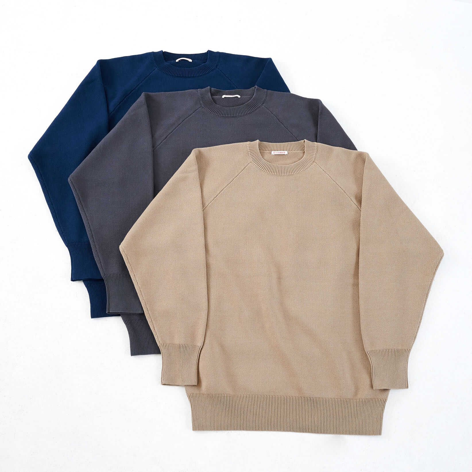 「FULTON SWEATER」は、ウズベキスタンで無農薬栽培されている綿花を原料とする、高級長綿を使ったラグランスリーブのコットンセーター。高度なニッティング技術によって編み上げられた、リラックス感ただようスウェットライクなニットは、時代もスタイルも超えて愛用できる、たしかなつくりと上品な佇まいが魅力。長く着ることができるという点でも、サステナブルなこと間違いナシ。