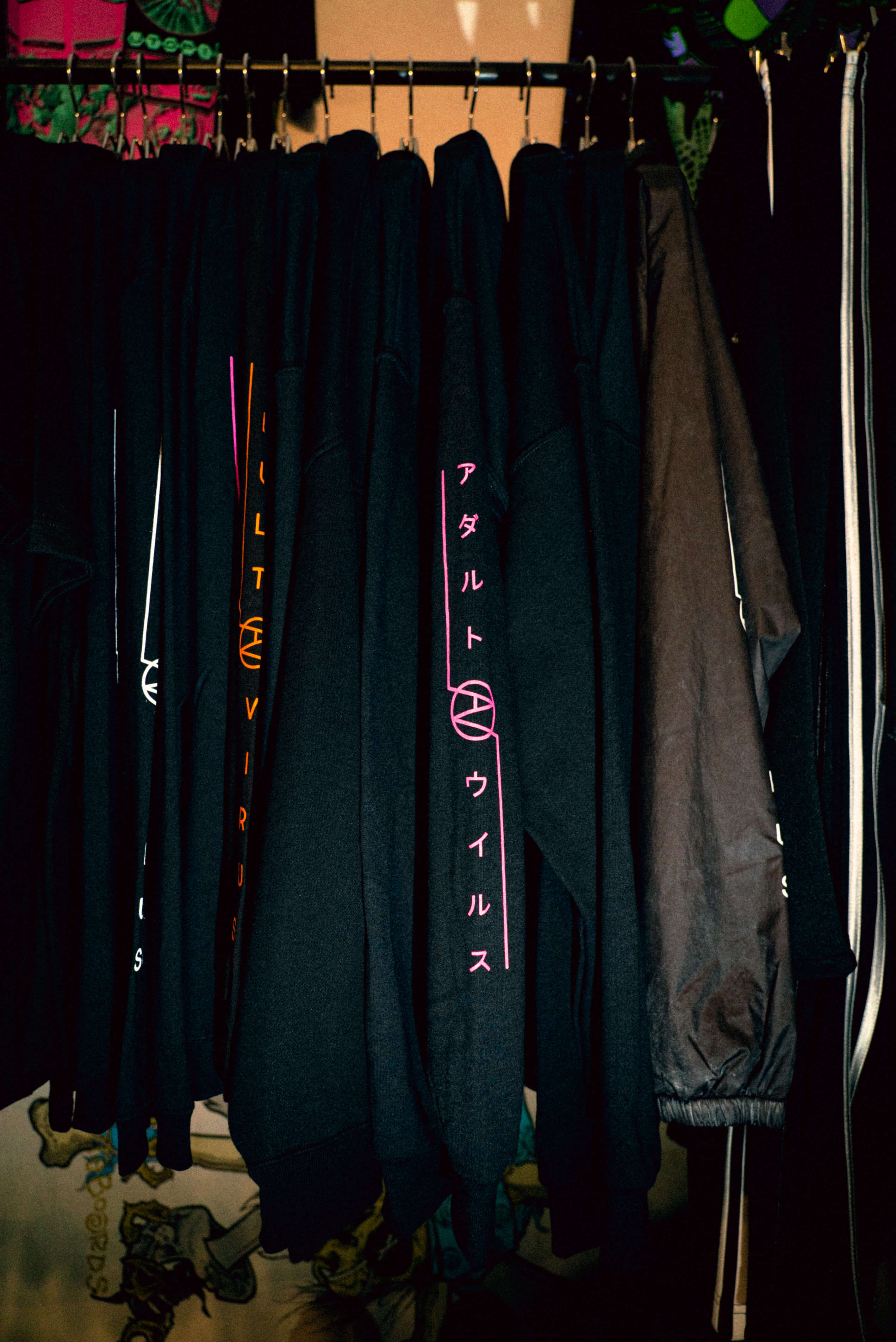 アシッドパンク、テクノエロティック、スペーススケートをテーマに掲げ、大人げない未来と幼稚な過去のミクスチャースタイルのファッションを提案する「ADULT VIRUS(アダルトウイルス)」。2018年にブランドとして始まり、2019年にはブティック兼アトリエを下北沢の一番街に構えた。オリジナルアイテムと古着に共通しているのは“カルチャー”を感じるということ。漫画、アニメ、音楽、映画、ゲームなどカオティックにカルチャーが混ざり合い、独自のスタイルを貫くADULT VIRUSの世界観を紐解く。