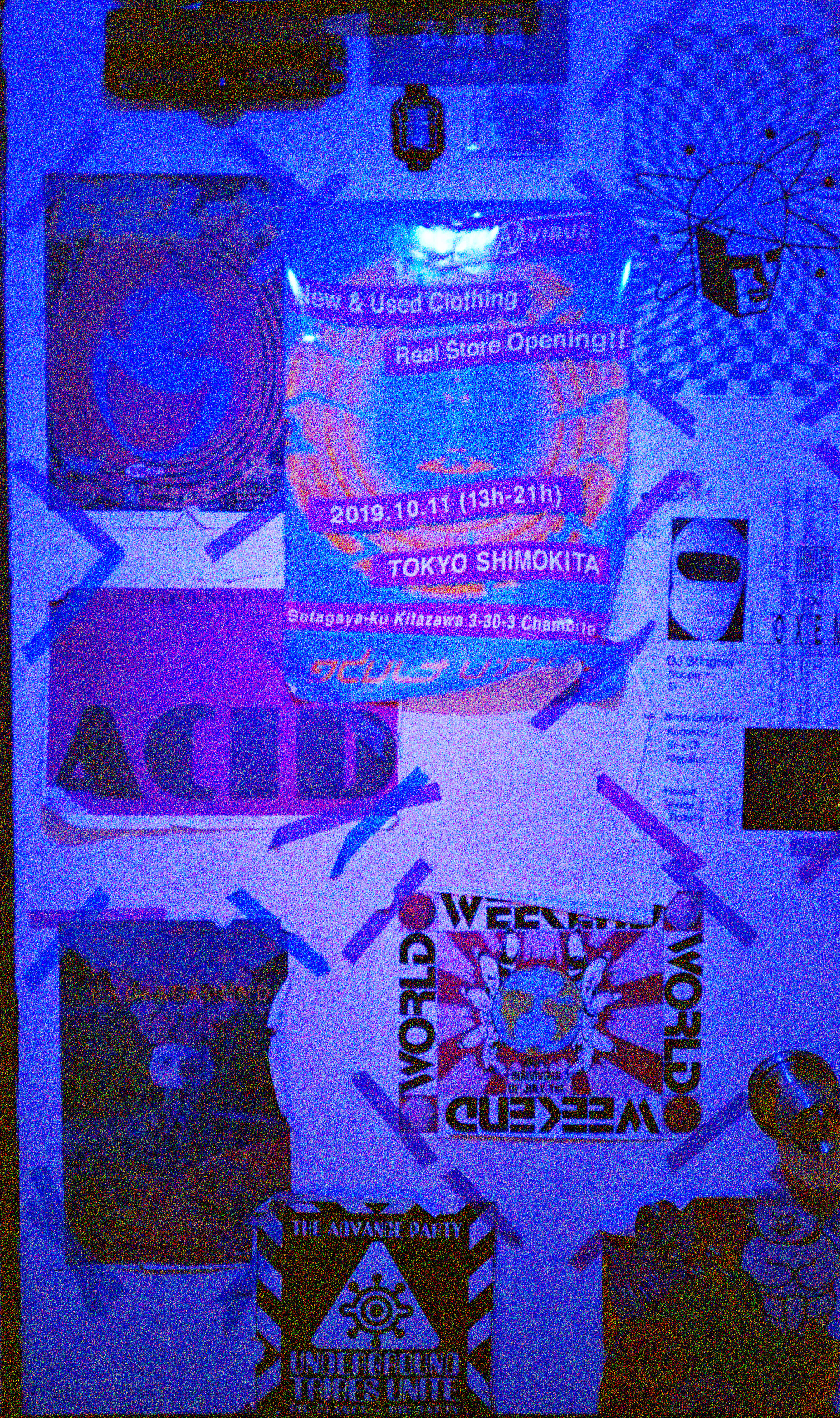 KIYO: 基本的にはデザインソースがあって、それをどうADULT VIRUSらしく表現するのかを意識していますね。1990年代のヨーロッパのレイヴフライヤーデザインをめちゃくちゃ参考にしています。手作り感がすごく良くて、店内にも当時の物をプリントアウトしてたくさん貼っています。