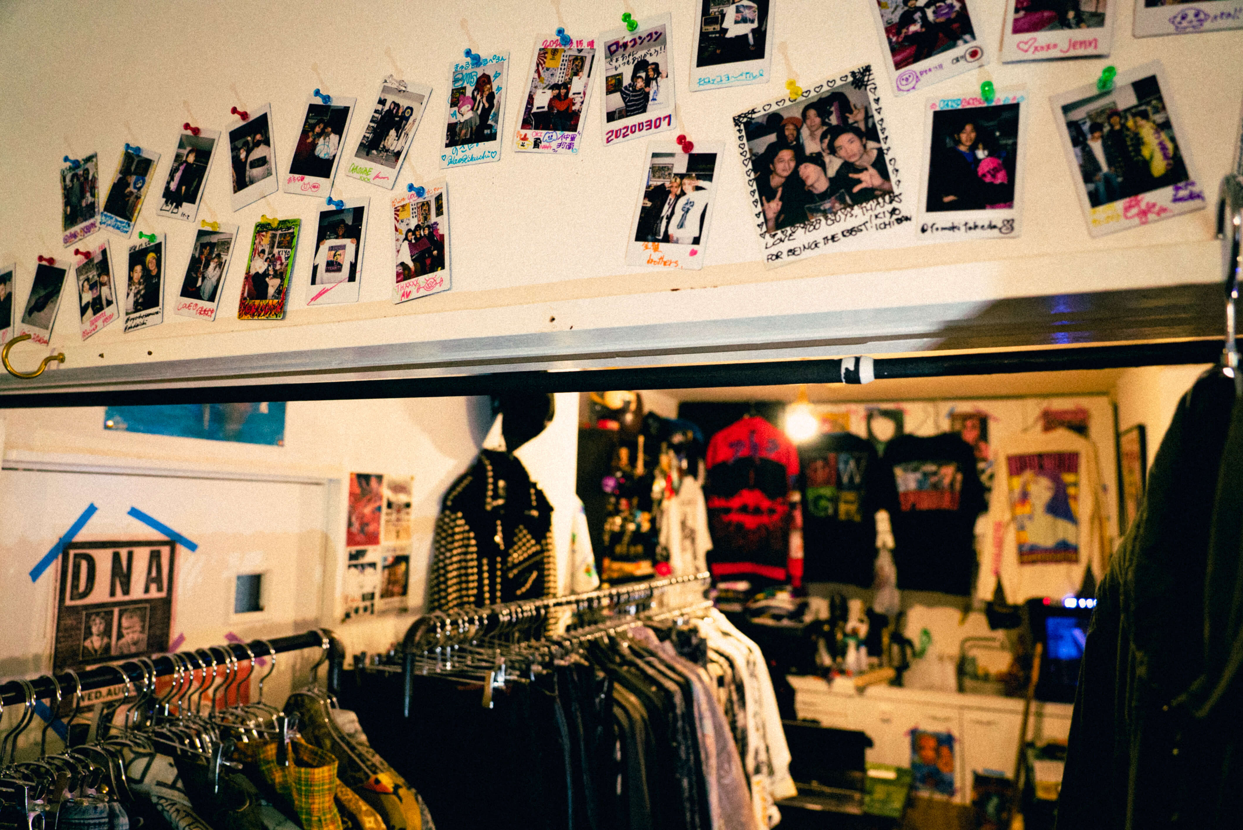 お店がオープンした頃、お客さんがまったく来ない状態が続いていたときに、たまたま来てくれたのが釈迦坊主さんと彼のクルーだったんですね。一着も売れていなかったのに洋服を爆買いしてくれて。インタビューやミュージックビデオやライブでもウチの服を着てくれていて。
