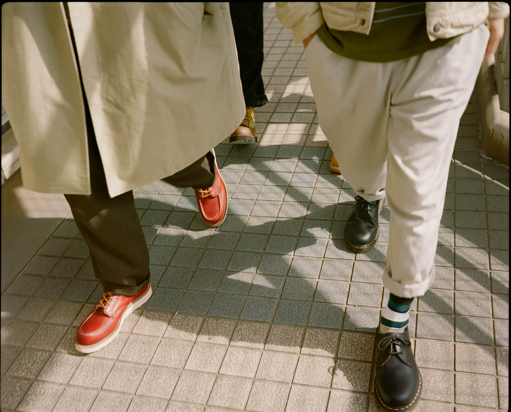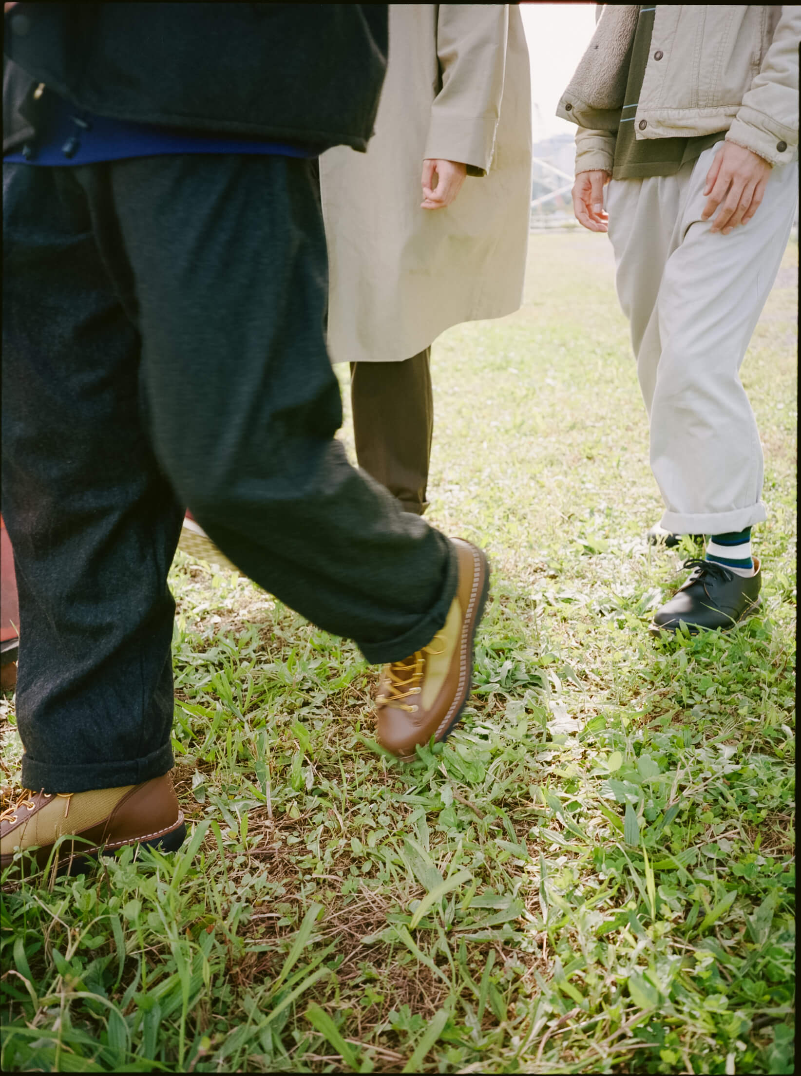 「音楽好きは、その流れを押さえていないとしないような格好がにじみ出ているんですよ。素材が良い服を着るよりは、ボロくても趣のあるものが好きですね」とKachiが語れば、Shimonakaは敬愛するバンドを引き合いに出す。「ペイヴメントはわざとロックスターの格好をしないというか、俯瞰的なんです。あのあえてスタイルを持たないアティチュードに影響を受けていて」。音楽のカッコ良さは、佇まいにも反映される。音楽ありきのDYGLだからこそ、おろし立てのブーツを履いていても違和感がない。