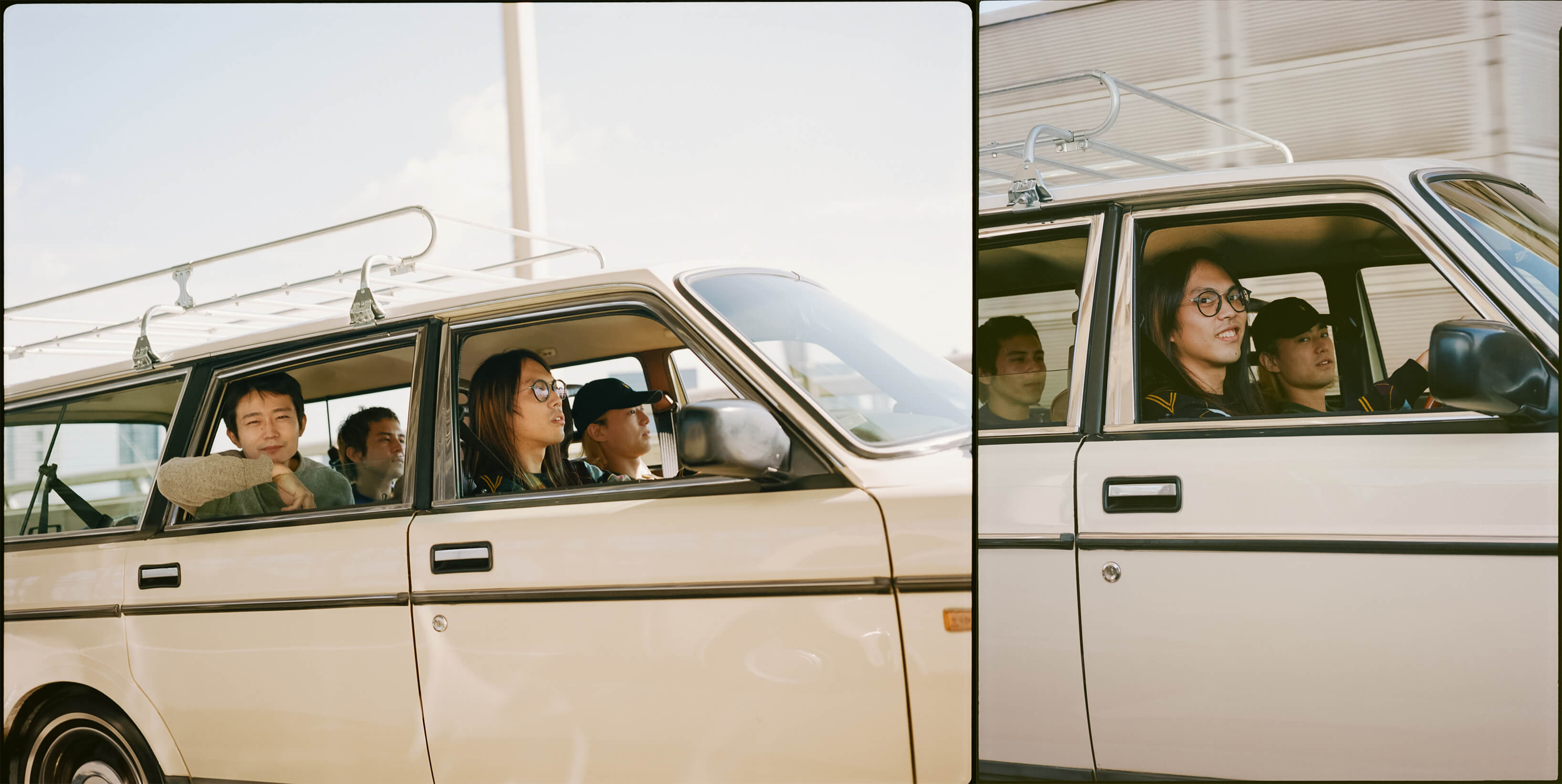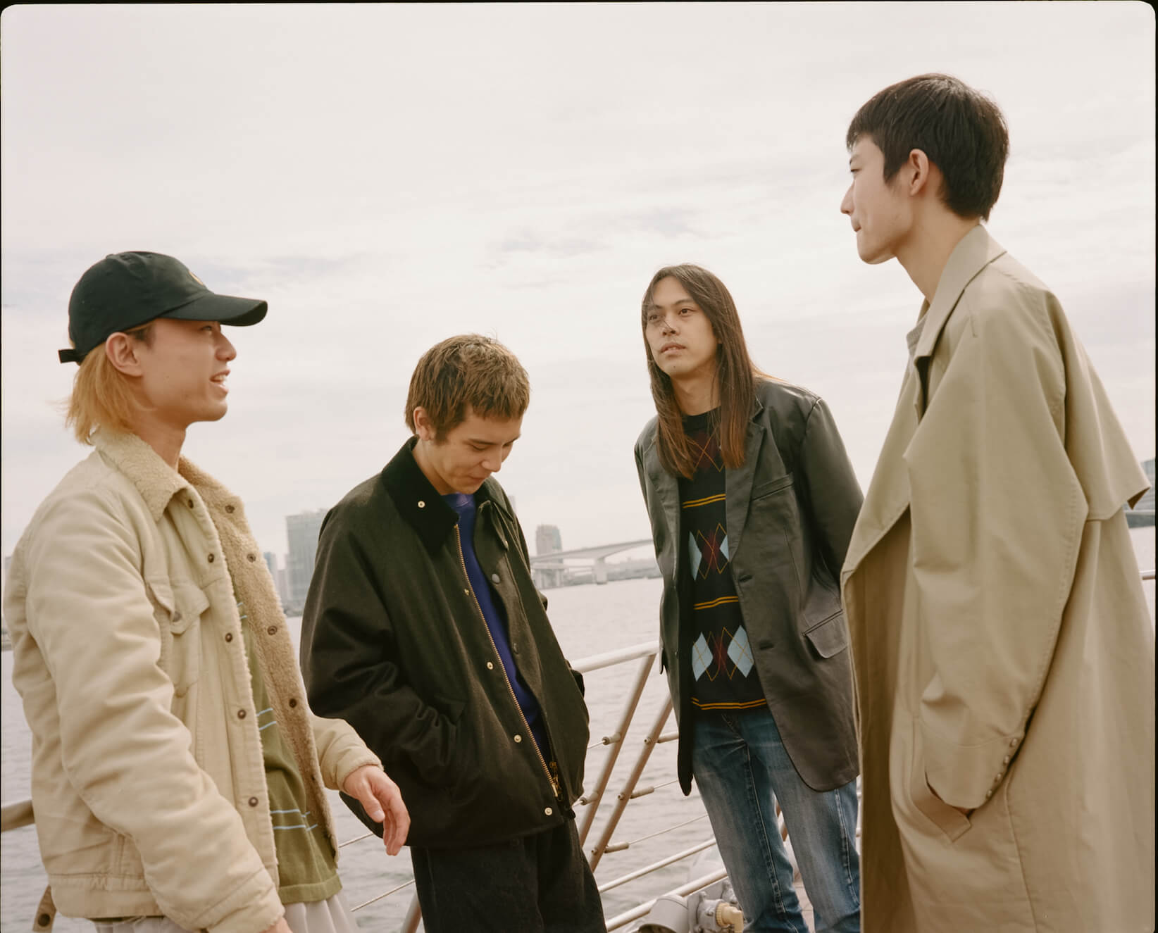 同じ大学に通っていたメンバー4人にとって共通体験のお台場は、学園祭の打ち上げで訪れた深夜のシチュエーション。Akiyamaが「選択肢としてはかなり狭めだけど、実際に来るとテンションが上がりますね」と話せば、Shimonakaは「天気に恵まれて海がキレイな一方で、生活がまったく見えないんですよね。このビルや商業施設が多いエリアにどんな人たちが暮らしているのか想像できない」と、彼らに限らず多くの人にとって、お台場は非日常的な場所なのだろう。