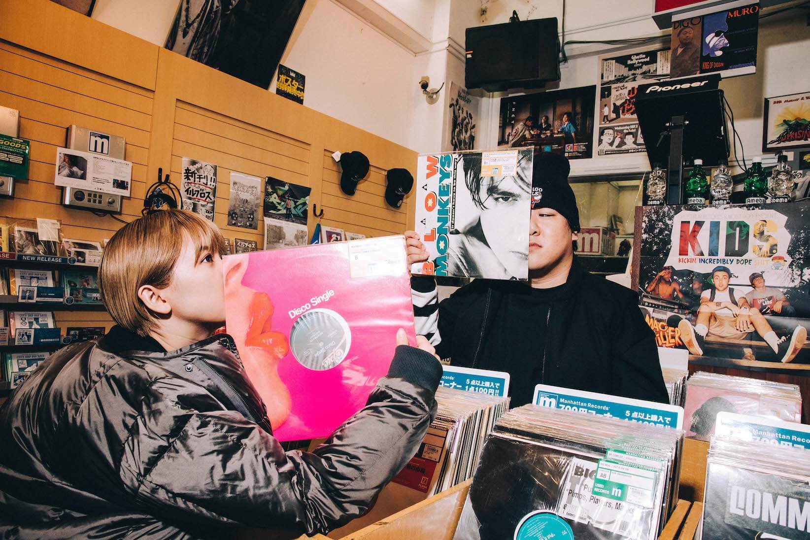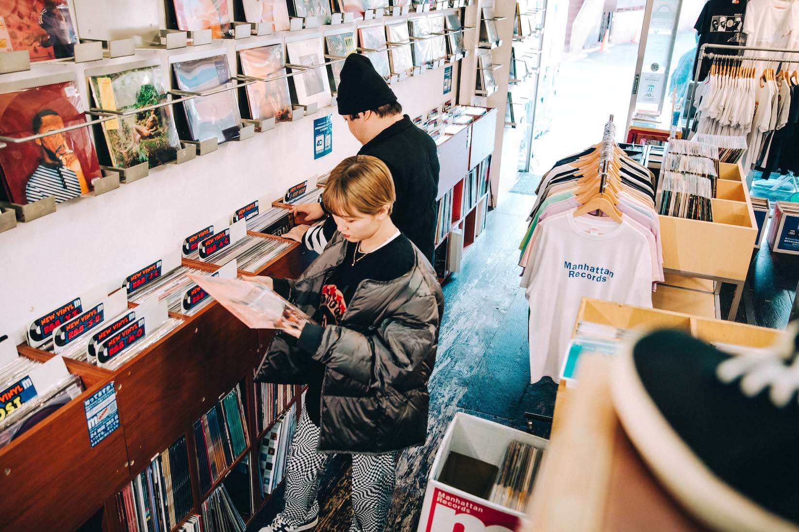 原宿はちょっと歩けば、渋谷、表参道、青山、外苑前、千駄ヶ谷……という具合に、散歩しながら街並みの移ろいをグラデーション的に楽しめる。山手線をあえて原宿で降りて、隣町まで歩きたくなるもの。原宿で町中華を味わったあとは、渋谷のマンハッタンレコードへ。二人の共通項であるHIPHOPの文脈で語られるレコードショップだ。