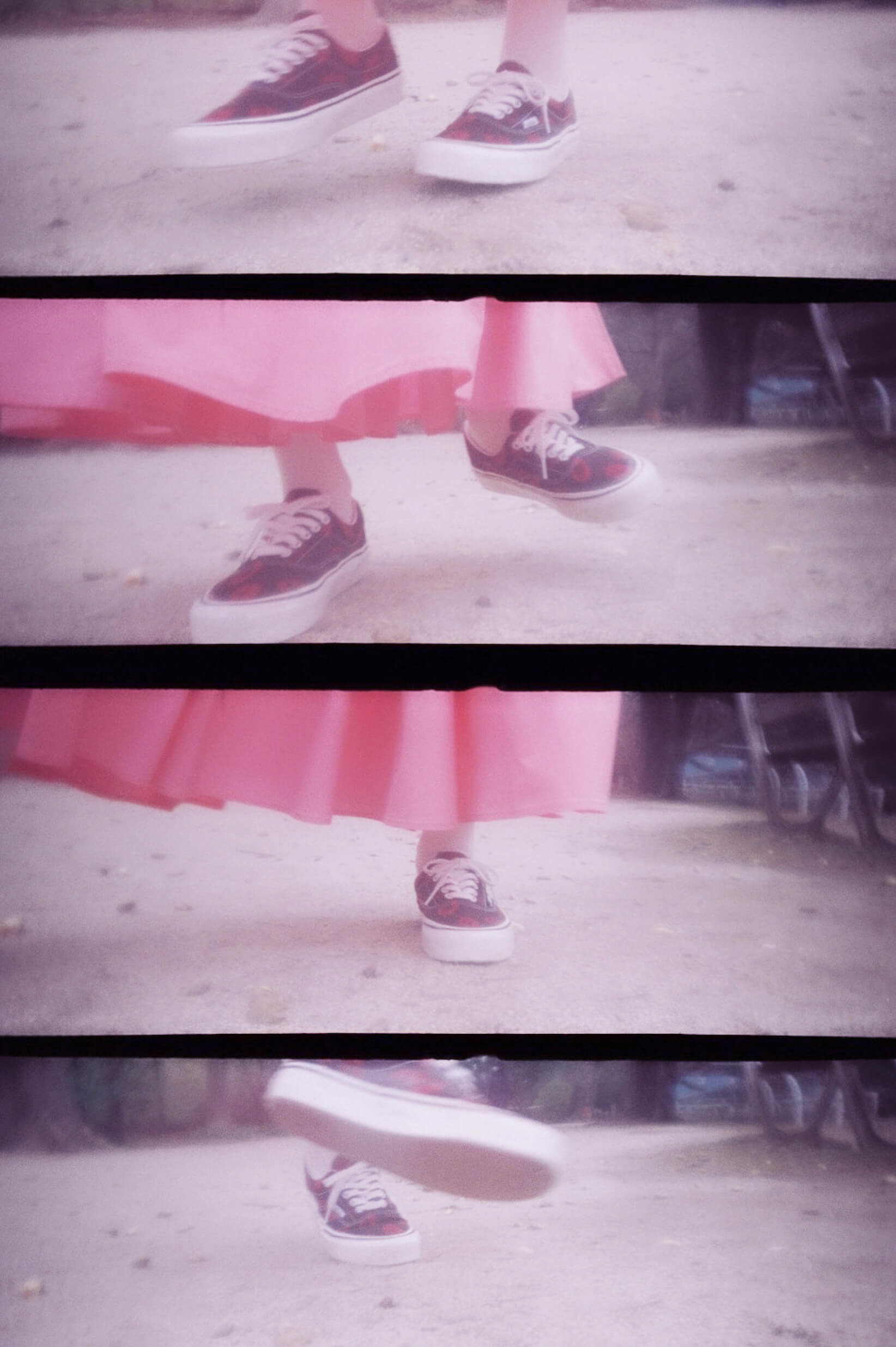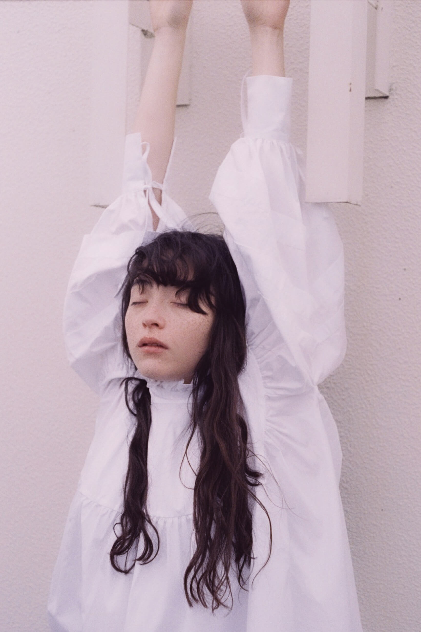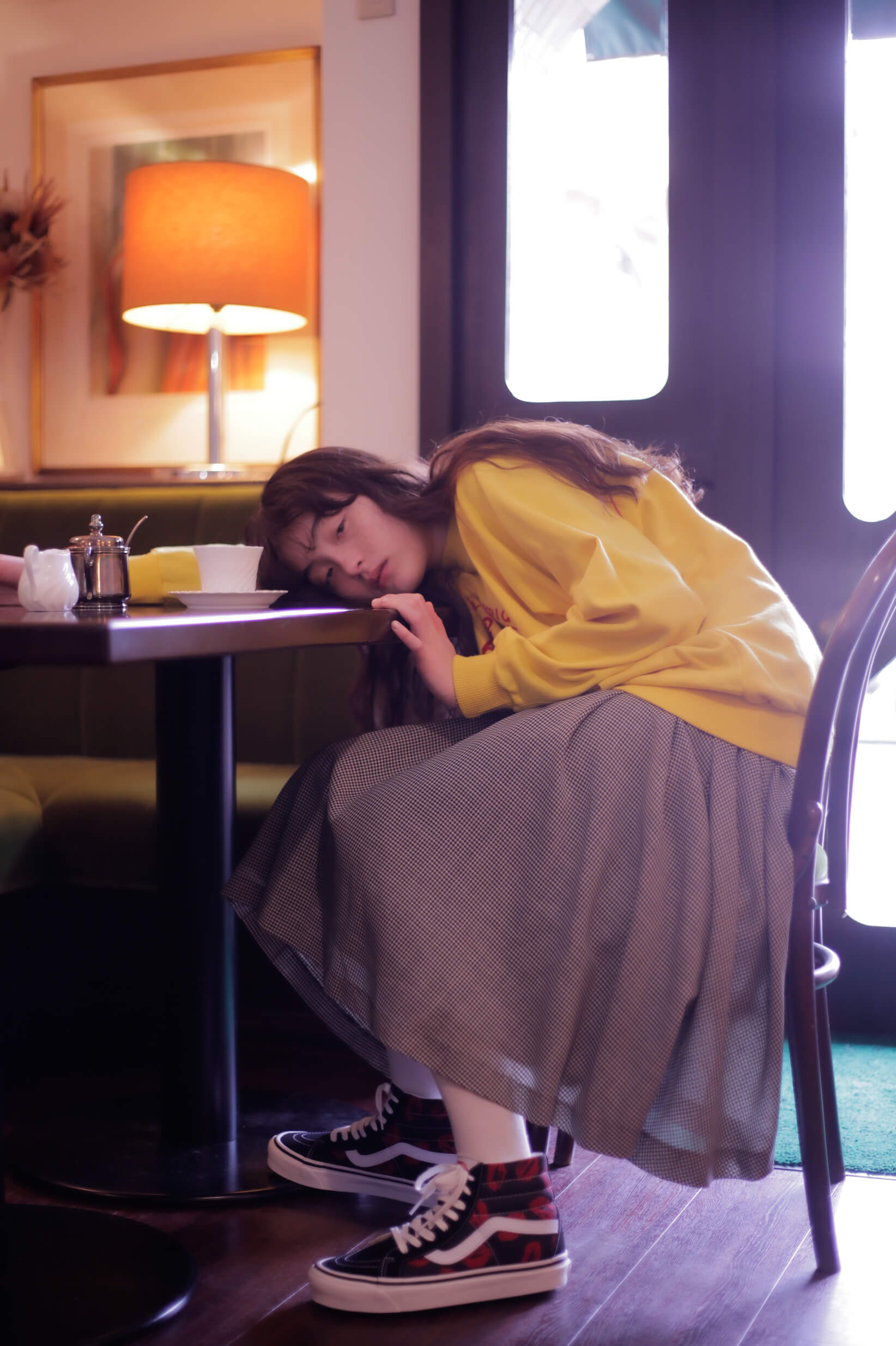 「事務所に入ってからすぐにレッスンに行くようになるんですけど、演技や発声のレッスンが全然好きじゃなくて。あるときにマネージャーさんと『装苑』の編集部に顔見せに行ったら、ちょうどニューカマーのモデルを探していたタイミングだったんですよ。それがきっかけでモデルの仕事がスタートしたんです。その一方でドラマや映画のオーディションも受けていて、はじめて受かったのが『少女邂逅』なんです。絶対に落ちたと思っていたのに。今もまだ演技について探っている途中だけど、『少女邂逅』の撮影のときに枝優花監督が何もわからない私にみっちり付き添ってくれて。うまく言葉にできないけど、そこで学んだ経験が大きいですね」。
